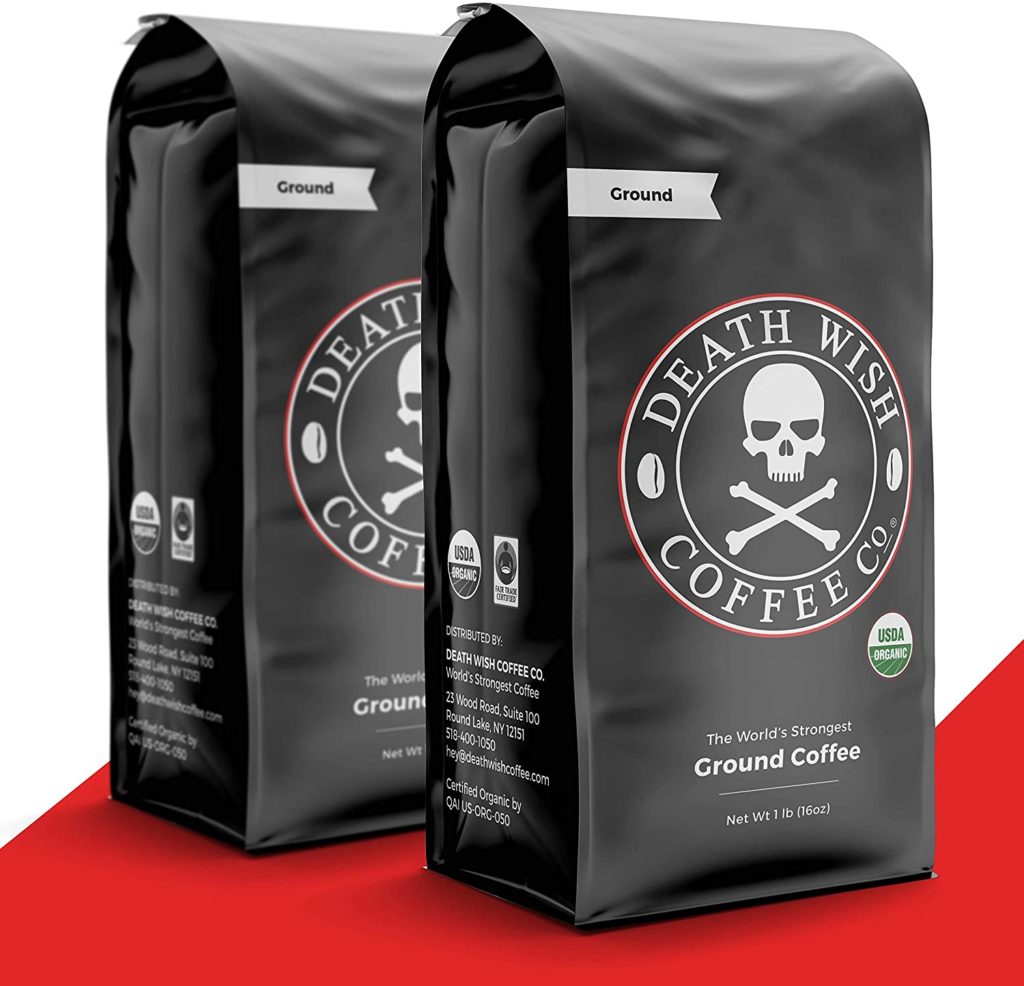Death wish coffee has been labeled as the world’s strongest coffee and contains about 728mg of caffeine per cup. Death wish coffee is widely recognized around the globe and its popularized by athletes and Superbowl ads.